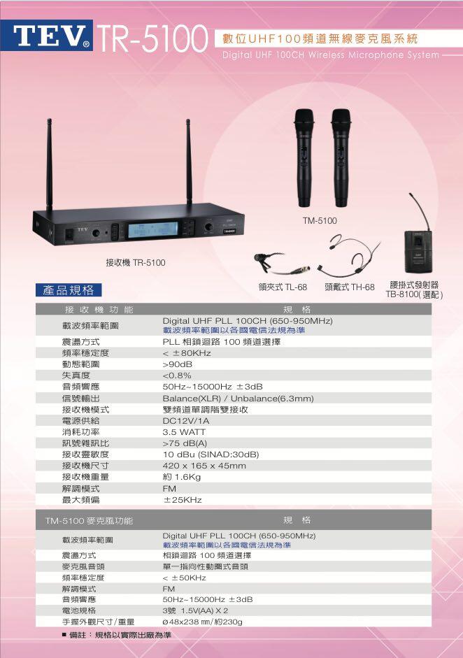 | KTV 卡拉OK專用 UHF 100CH無線麥克風 TR-5100 | 78.26 KB | 2024-01-16 |