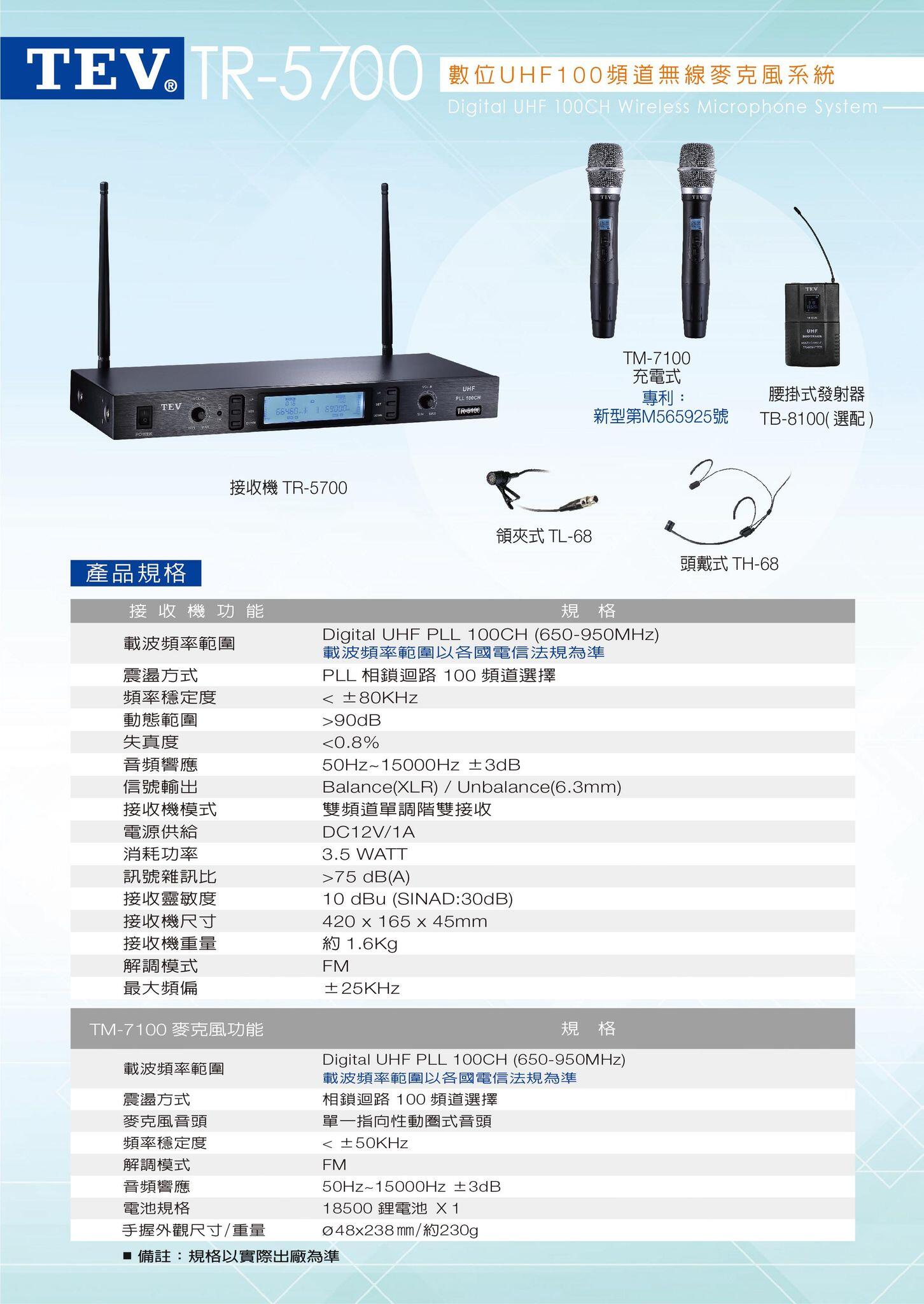 | KTV 卡拉OK專用 充電式UHF 100CH無線麥克風 TR-5700 | 262.46 KB | 2020-12-28 |
